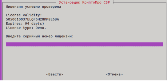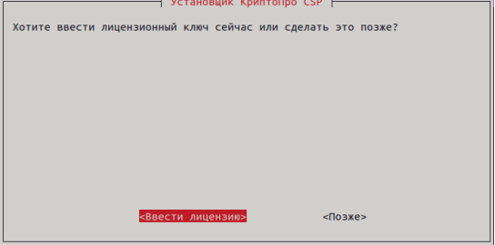 Сразу после завершения можно ввести лицензию КриптоПро CSP.