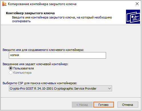 После копирования система вернется на вкладку «Сервис» КриптоПро CSP. Копирование завершено.