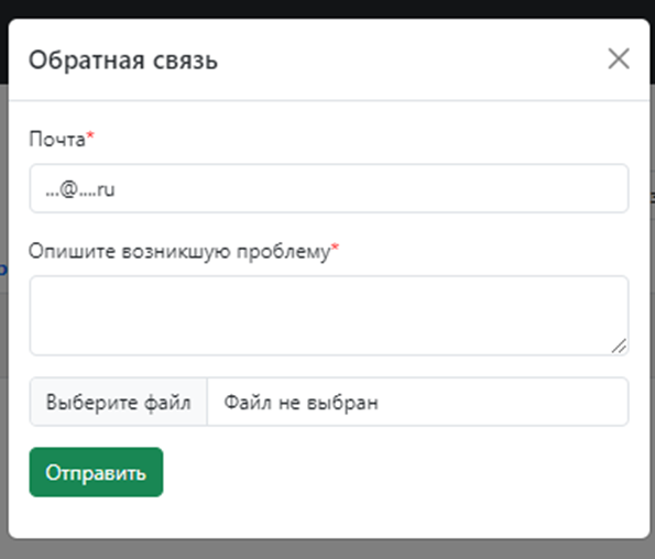 При открытии данного раздела, Ваш электронный адрес автоматически заполниться из профиля пользователя.