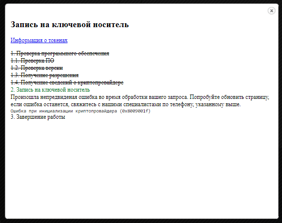 При генерации подписи, в момент записи сертификата электронной подписи на защищенный носитель, происходит данная ошибка из-за установленной версии vipnet CSP 4.2.