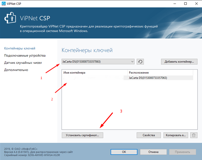 1. Запись сертификата электронной подписи вручную через vipnet CSP.