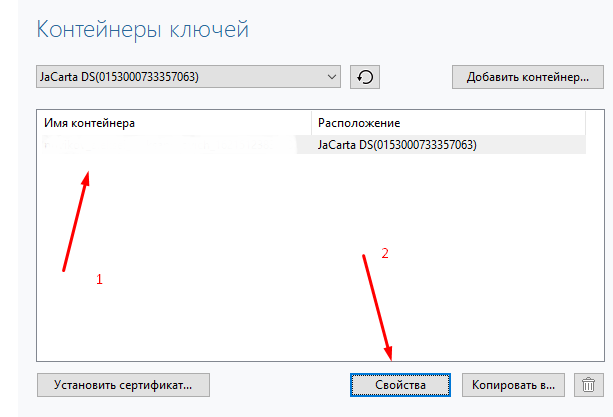- Необходимо проверить установился ли сертификат в контейнер подписи, вновь выбираем подпись, после нажимаем на «свойства».