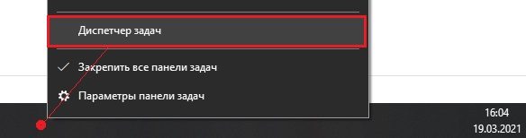 - Требуется открыть диспетчер задач, для этого нажмите правой кнопкой мыши на панель задач