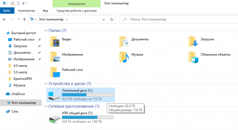 - Открыть Мой компьютер/Этот компьютер, выбрать диск «С»