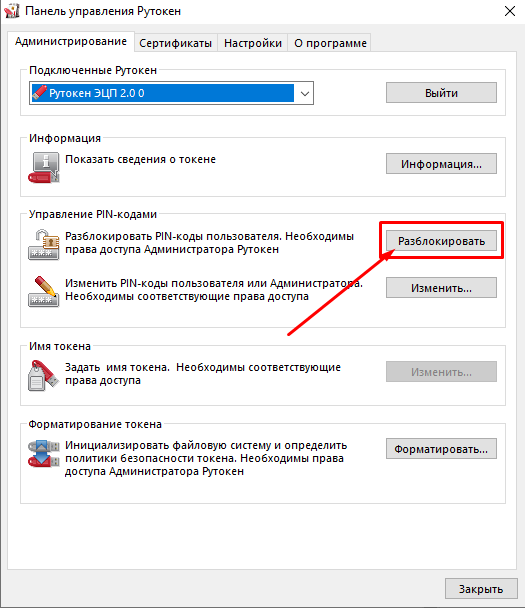 - Если все действия выполнены верно, появится информационное сообщение “PIN-код успешно разблокирован». Нажмите кнопку «OK».