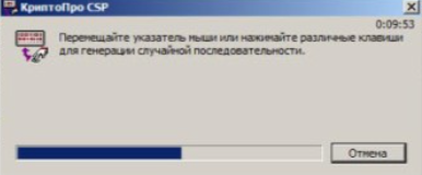 - При генерации сертификата на пункте 2.1.3, в окне: «двигайте указатель мыши или нажимайте клавиши на клавиатуре» не производить никаких нажатий, как того просит инструкция, в течении 10 минут таймера.