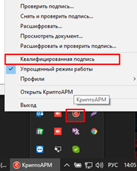 Так же, если для подписания используется программа КриптоАРМ, перед подписанием обратите внимание, чтобы был отключен режим Квалифицированная подпись в КриптоАРМ.
