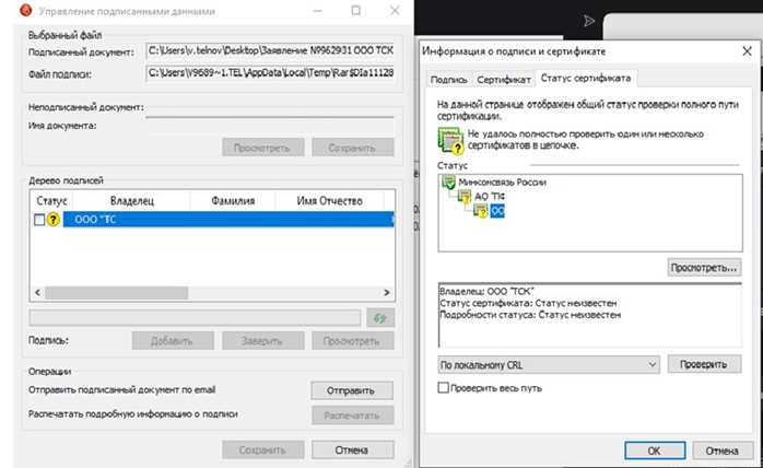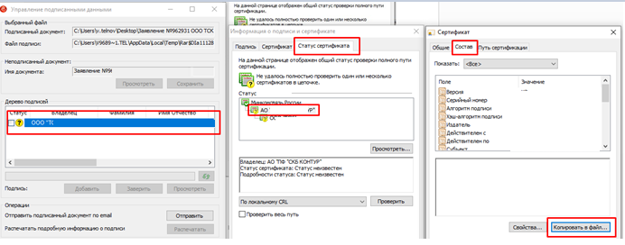 Для проверки и исправления ошибок в подписанных документах используется программное обеспечение Крипто АРМ, Его Вы можете скачать по ссылке