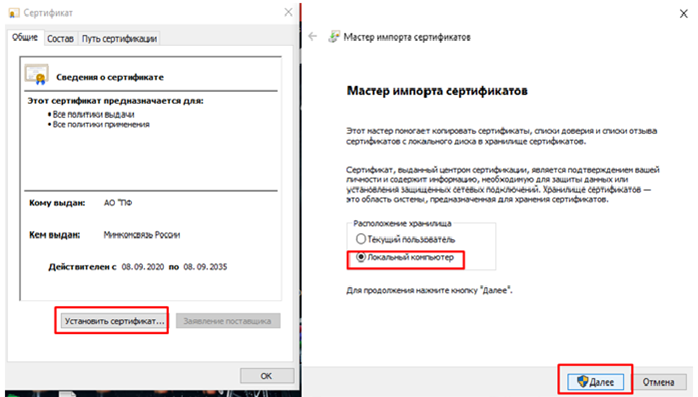- Открываем сертификат, далее делаем все пошагово как на скриншоте: