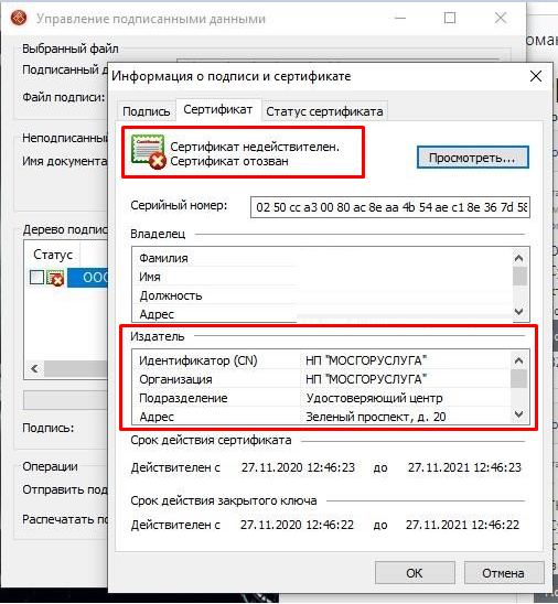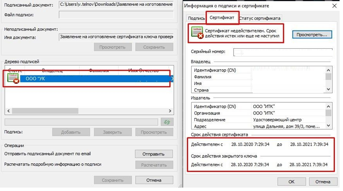 - Сертификат недействителен. Срок действия истек или еще не наступил.