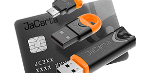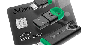 JaCarta PRO — семейство USB-токенов и смарт-карт для обеспечения строгой двухфакторной аутентификации пользователей при работе с инфраструктурой открытых ключей (PKI) и доступе к защищённым информационным ресурсам организации, а также для безопасного хранения ключей, ключевых контейнеров программных СКЗИ (КриптоПро CSP, ViPNet CSP и др.), профилей и паролей.