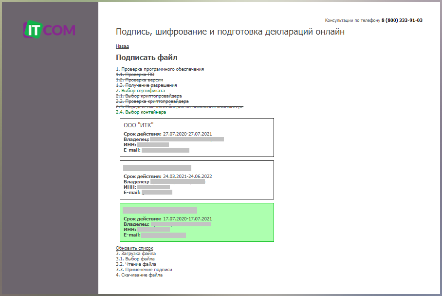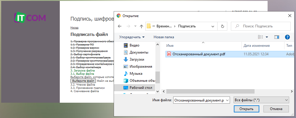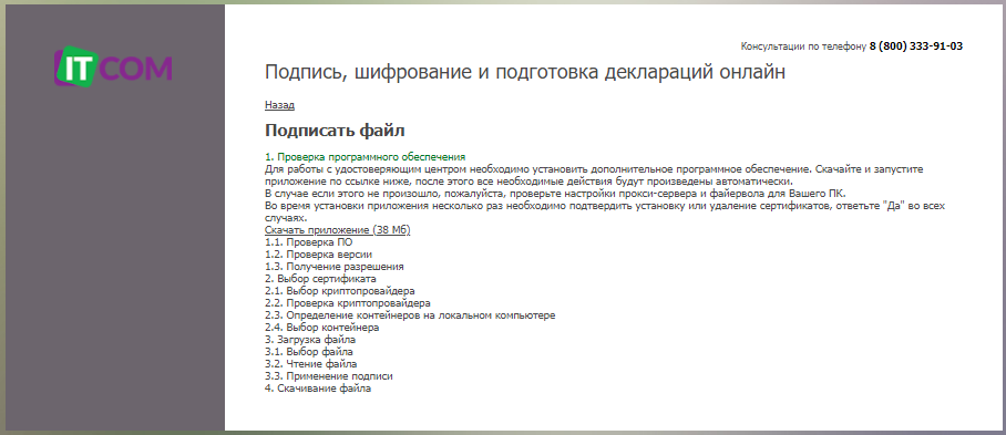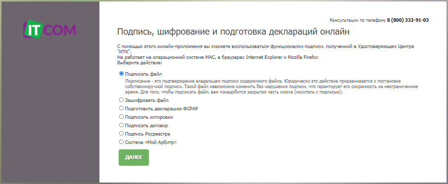 1. Перейдите по ссылке УЦ ITCOM – Подпись файла онлайн