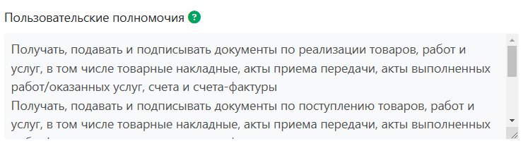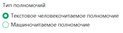 - Текстовое человекочитаемое полномочие — заполняются вручную в отведенном для этого поле (максимум 10 000 символов). Являются аналогом бумажной доверенности и требуют ручной обработки.