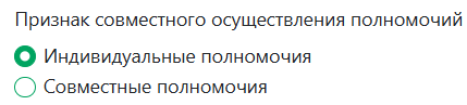 На шаге полномочия выберите параметр совместного осуществления полномочий. На данном шаге необходимо указать, будут ли полномочия выполняться совместно с другими представителями.