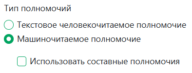 - Машиночитаемое полномочие — стандартизированные, автоматически проверяемые системой полномочия из электронных справочников. Одна доверенность может содержать до 500 таких полномочий.