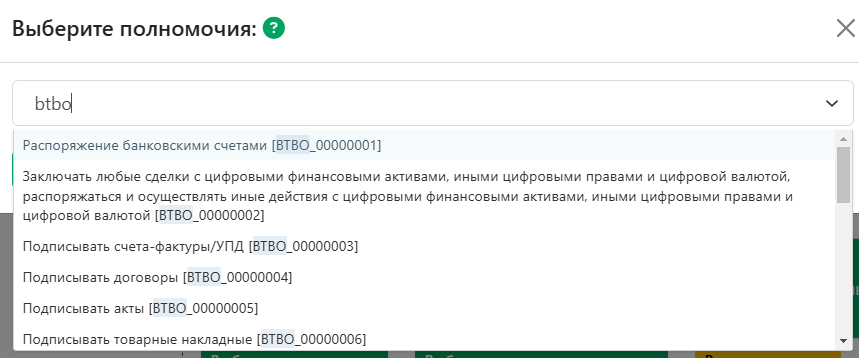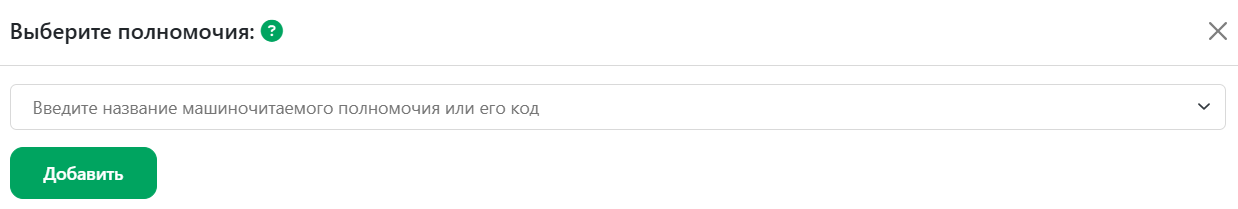 Чтобы добавить машиночитаемые полномочия из поиска нажмите кнопку «Выберите полномочия».