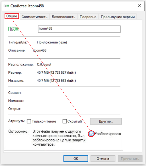 2. Откроется вкладка «Общее», и внизу требуется поставить галочку в окне «Разблокировать»