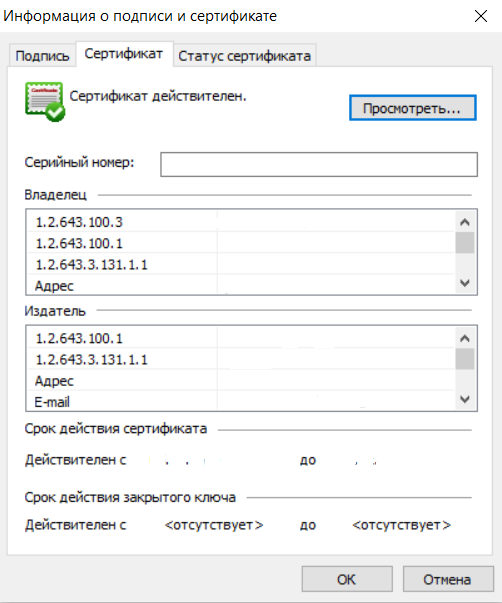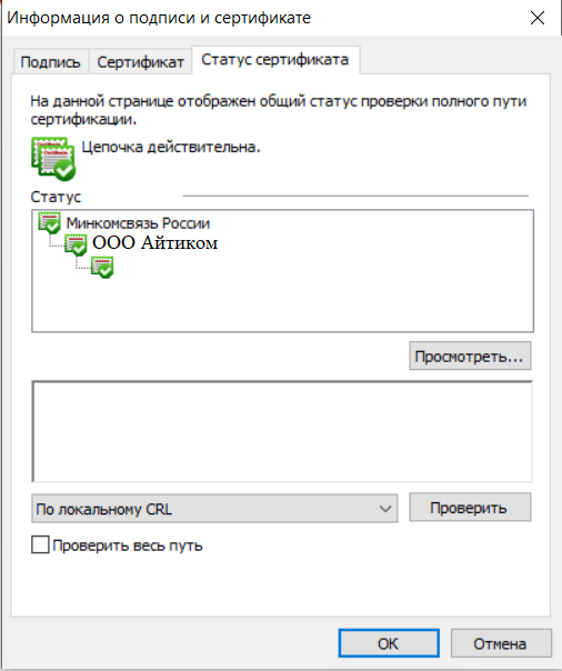 выйдет окошко где вы можете посмотреть информацию о подписи и сертификата