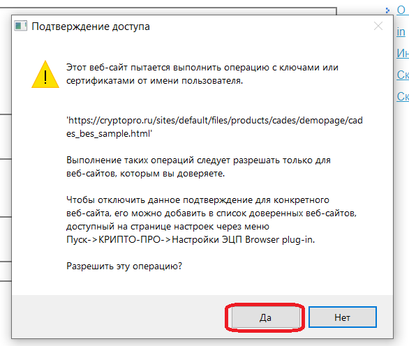 4. Теперь на примере браузера Google Chrome протестируем вашу КЭП: