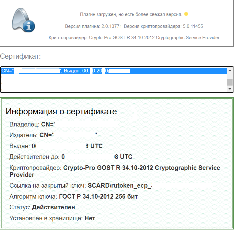 В информации о сертификате сказано что подпись имеет статут «Действителен» и никаких ошибок нет