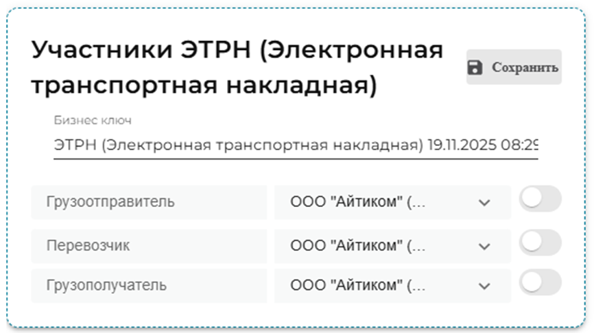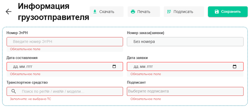 Рассмотрим создание ЭТРН (Электронная транспортная накладная).