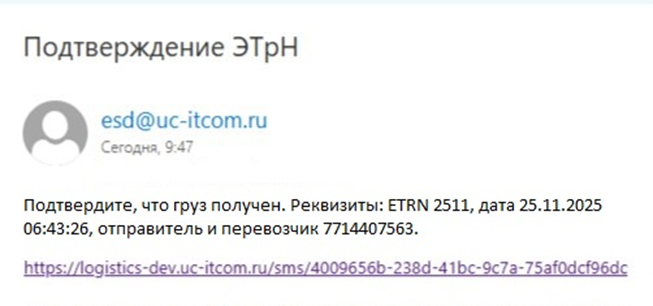 В данном письме будет ссылка для того чтобы потвердеть получения груза.