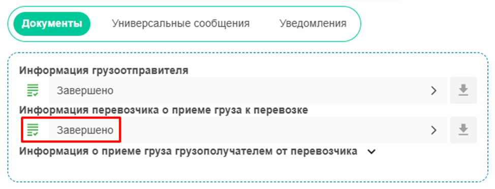 После того как погрузка осуществлена ИС ЭПД формирует титул на заполнение со стороны грузополучателя о приеме груза от перевозчика. Данный титул подписывает после того как грузоперевозчик привез груз в точку выгрузки и груз был принят заказчиком.