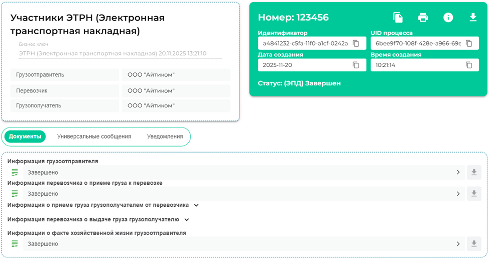 После того все титулы подписаны ИС ЭПД завершает работу с данным ЭТРН, информацию о всех ранее созданных и завершенных документах возможно посмотреть в разделе «Мои документы».