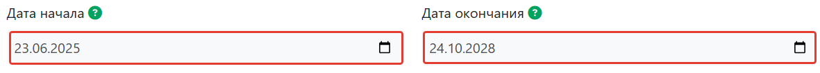 Укажите дату начала и дату окончания действия доверенности в соответствующих полях.