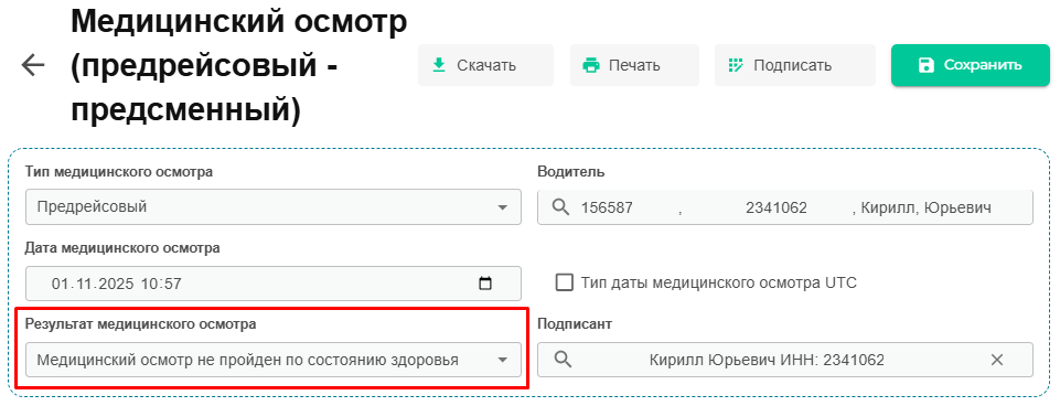 Водитель не прошел медицинский осмотр или технический осмотр