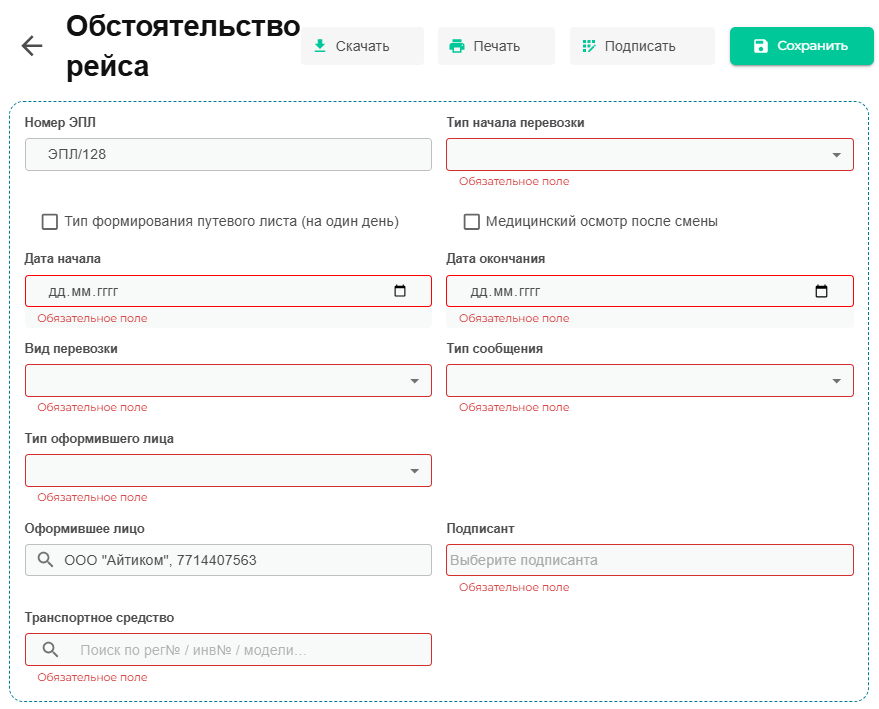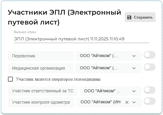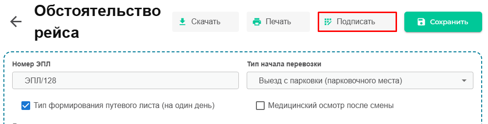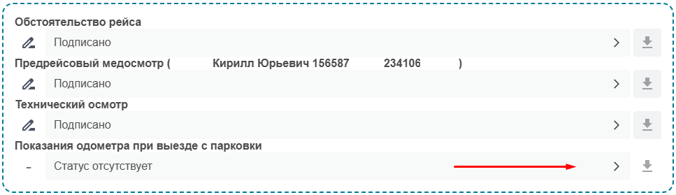 После того как водитель успешно прошел медицинский осмотр, а авто успешно прошло технический осмотр, в сервисе сформировался Т4 в который вносятся показания одометра при выезде с парковки.