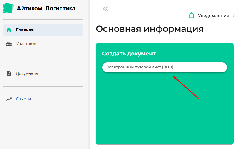 На главной странице жмем клавишу «Электронный путевой лист (ЭПЛ)».