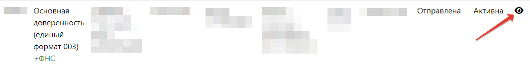 Так же эту информацию пользователь может увидеть в доверенности, нажать на пиктограмму «глаз» напротив нужной доверенности.