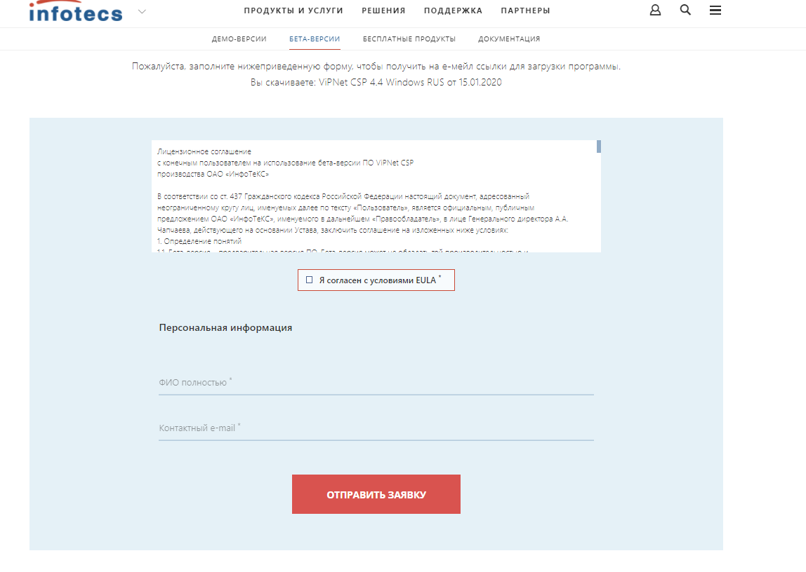 Заполняете форму и получаете на почту ссылку для загрузки дистрибутива.